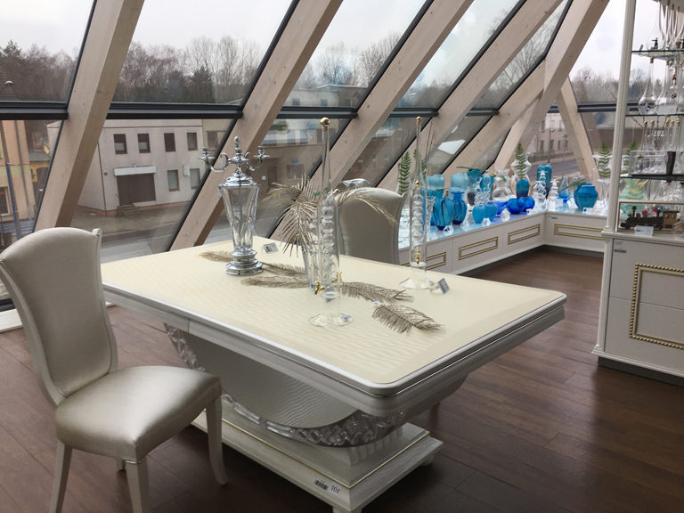 Die einzigartige, 18 m hohe und 35 m x 35 m breite Glaspyramide wurde von 2011 bis 2013 am Standort Döbern erbaut und ist ein echtes Shopping-Paradies und zugleich das größte Glaspyramidenkaufhaus der Welt. Auf 2.000 m² können hier vollendete Glasunikate und mehr als 10.000 exklusive Glaskreationen bestaunt und gekauft werden – sowohl aus eigener Produktion, als auch von nationalen und internationalen Designern und Künstlern der Glasszene. Abgerundet wird das Einkaufserlebnis im Cristalica Kingdom durch gemütliche Sitzecken im stilvollen Ambiente, sowie eine Auswahl an Snacks und Getränken.